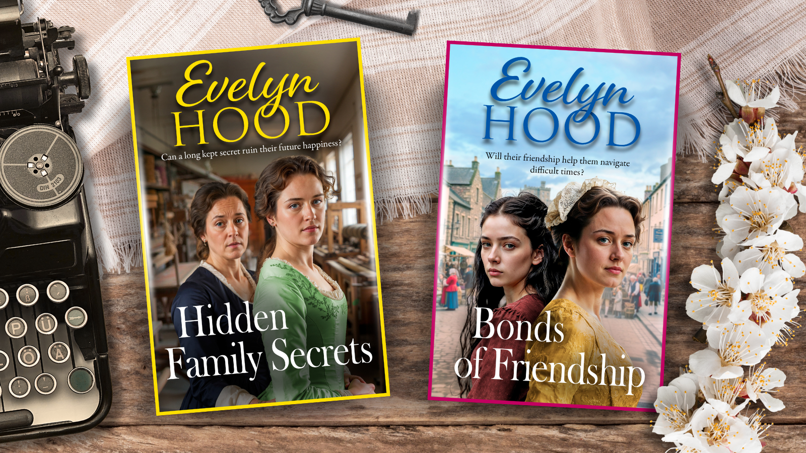 A new chapter begins. Starting in summer 2025 Boldwood Books is re-publishing 23 of Evelyn Hood’s novels. Follow the link to order now
